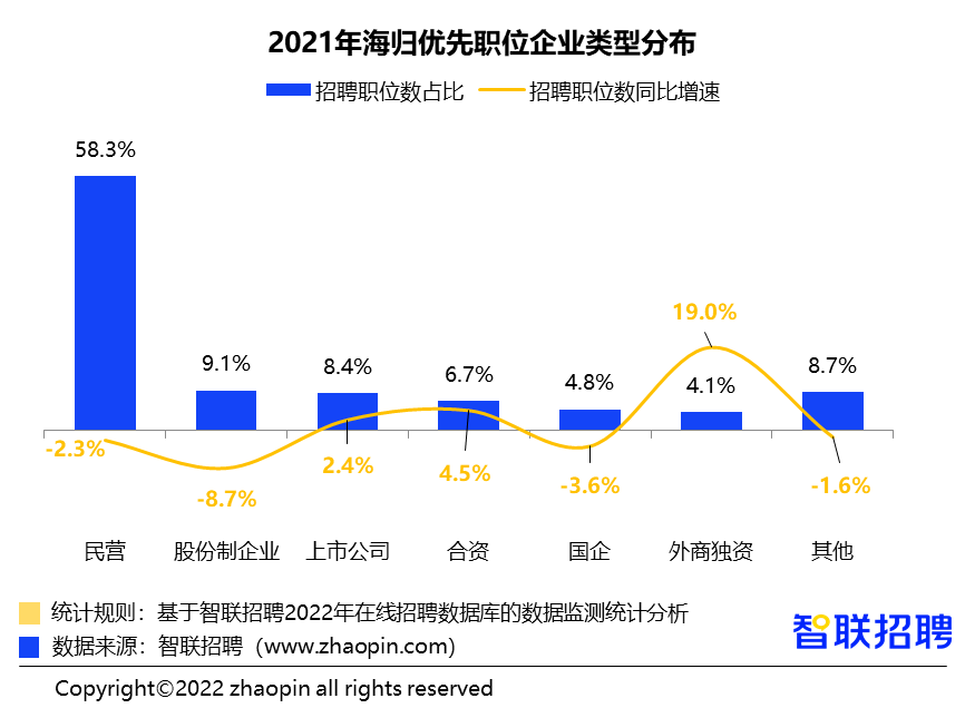 一线城市海归优先职位占全国44.5%,同比增7.6%