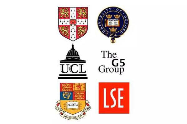 剑桥大学、牛津大学、帝国理工学院、伦敦大学学院、伦敦政治经济学院并称“G5超级精英”大学,简称G5大学,是顶尖的英国研究型大学,代表了英国最高水平的科研实力、师生质量和经济实力。